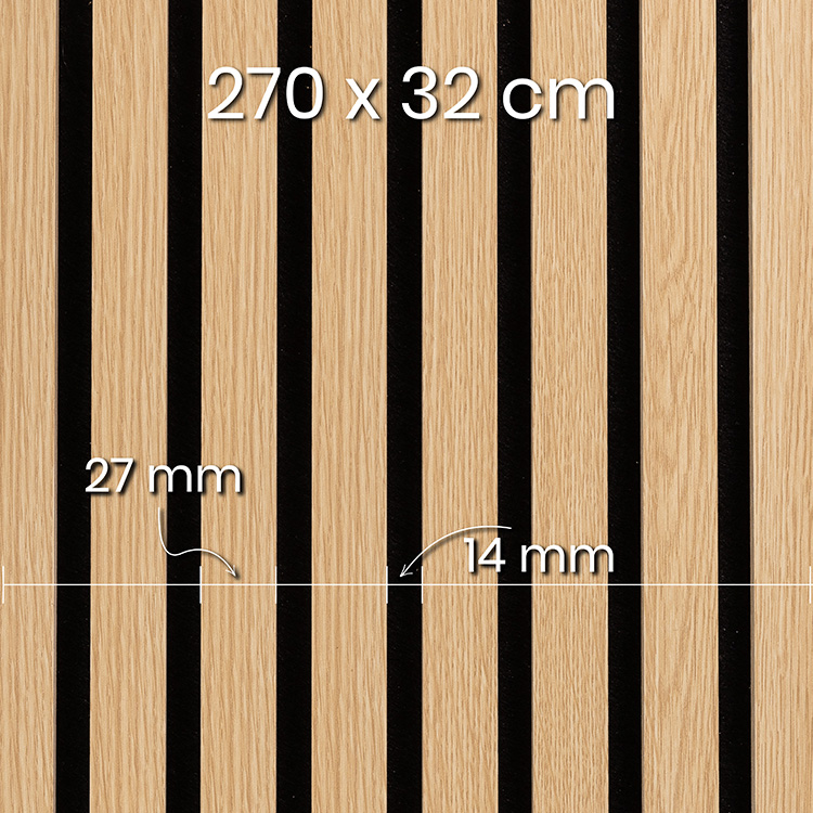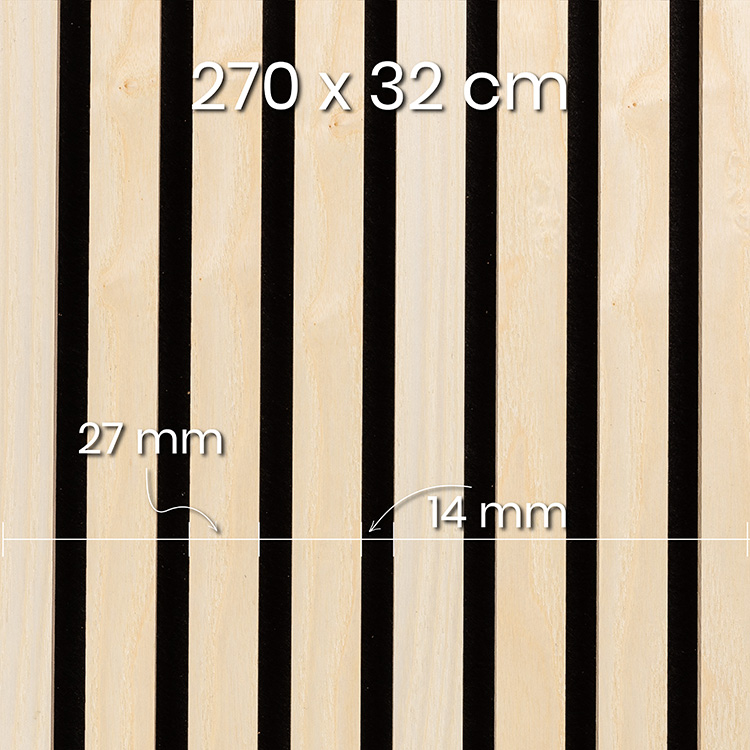 Die akustischen Lamellen auf robustem, schwarzem Filz sind langlebig und dennoch flexibel genug, um sich problemlos an verschiedene Räume anzupassen und einfach zu montieren. Sie haben die Maße 270 x 32 cm. Es gibt viele Montagemöglichkeiten, auch weil die Lamellen nach Bedarf zugeschnitten werden können.
