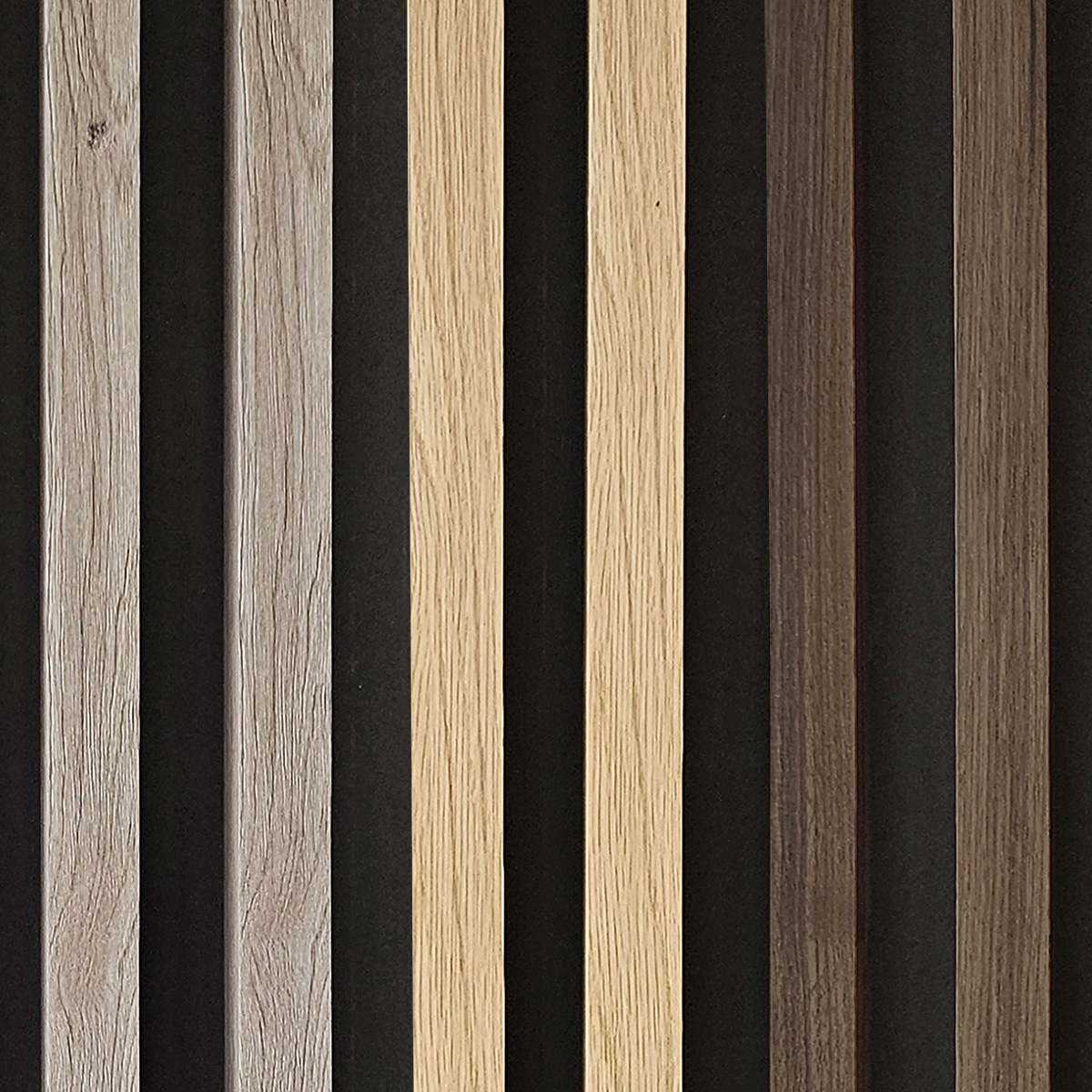 - Acoustic felt-backed slats – aesthetic and sound-absorbing: approx. EUR 25.2–37.8/m²