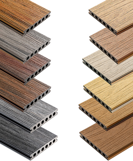 Verbundverkleidungsmaterialien werden aus einer Mischung verschiedener Bestandteile wie Holzfasern, Polymeren, Harzen und verstärkenden Zusätzen hergestellt. Diese Kombination macht diese Materialien extrem langlebig und widerstandsfähig gegen Witterungseinflüsse, UV-Strahlung und Schädlinge, was sie zu einer ausgezeichneten Wahl für den Innen- und Außenbereich macht.
