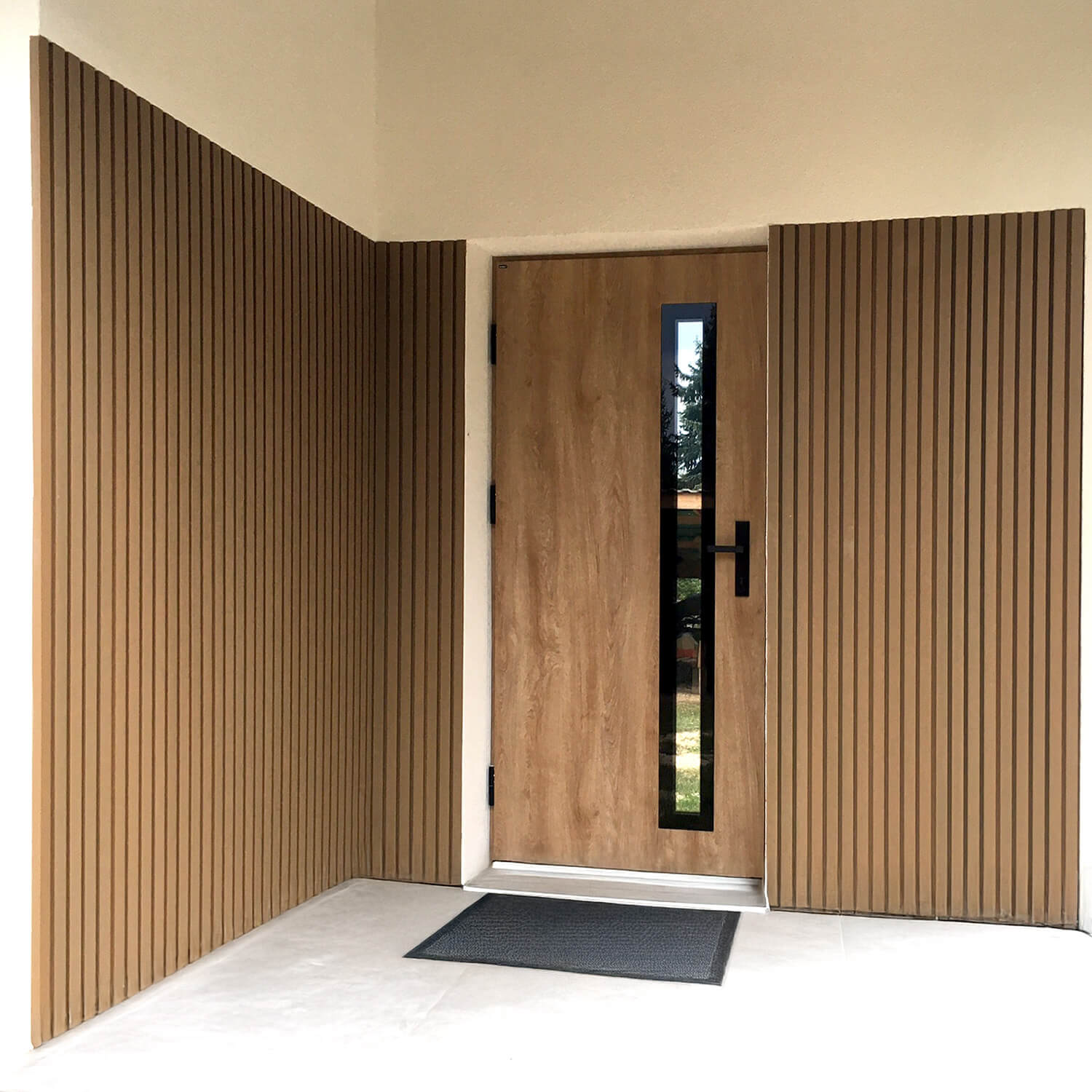 Achtung! Die Farbnuancierung sowie das Rillen / Bürsten der Systemleisten und Eckleisten unterscheiden sich von der Oberflächenbehandlung der Fassadenlamellen.