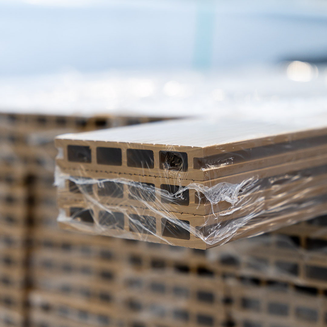 Die Dielen werden zusätzlich werkseitig sorgfältig in eine Schutzfolie verpackt, die sie während des Transports vor Feuchtigkeit, Verschmutzungen und kleineren mechanischen Beschädigungen schützt. So können Sie sicher sein, dass das bestellte Material in einwandfreiem Zustand und montagebereit bei Ihnen ankommt.