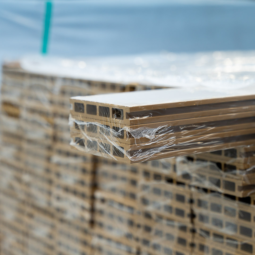 Die Dielen werden zusätzlich werkseitig sorgfältig in eine Schutzfolie verpackt, die sie während des Transports vor Feuchtigkeit, Verschmutzungen und kleineren mechanischen Beschädigungen schützt. So können Sie sicher sein, dass das bestellte Material in einwandfreiem Zustand und montagebereit bei Ihnen ankommt.