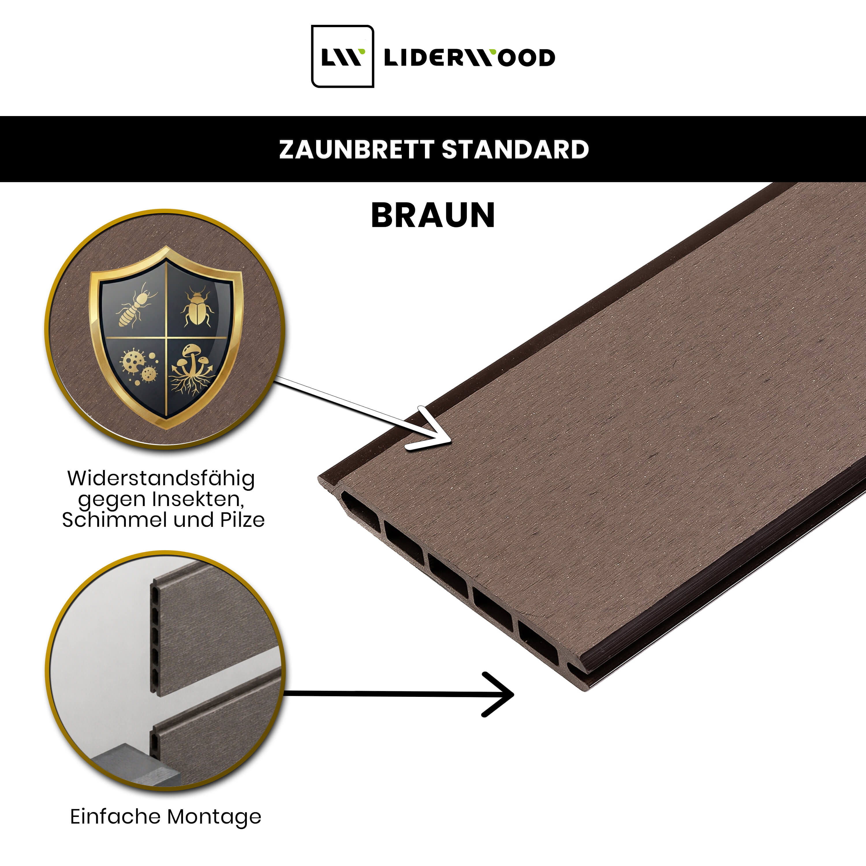 WPC Zaunbrett Standard Braun 162 x 20 mm - 1,8 m